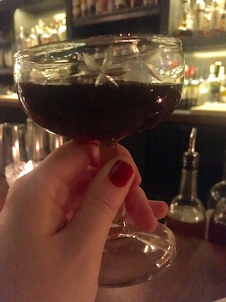 If you get there later, J. says to order The Martinez. Color me dubious, since it’s a gin cocktail and I hate gin. I suppose there’s a certain wintry feeling imparted by your whole mouth tasting like pine needles. I still call it gross But, if that’s your style, then gin mixed with vermouth, maraschino, and orange bitters does sound like the perfect antidote to a slate-grey Chicago winter.