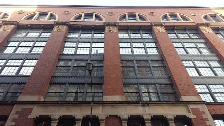 My favorite part of this beautiful building’s architecture is the cast iron in the facade. Those segments indicate the floors where the printing presses were once located. The cast iron also lends the building a fascinating and textured facade. Your eye can’t help but leap between the brick, limestone, huge windows, and that cast iron.